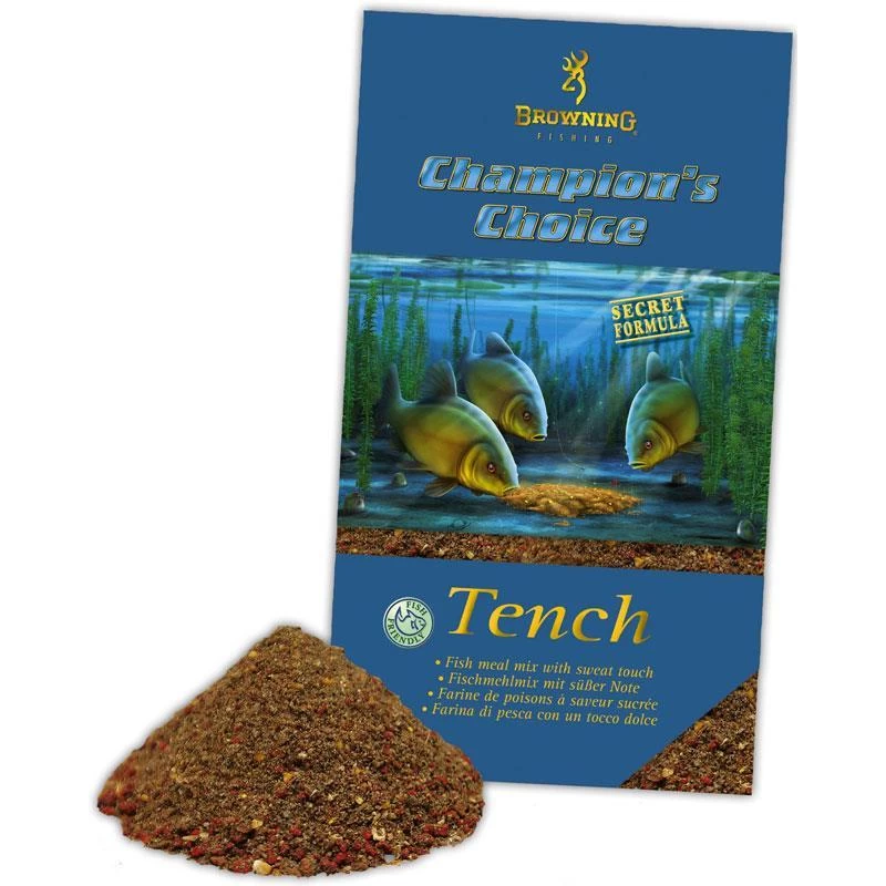 Le mélange « Spécial Tench » de la gamme d’amorces Champions Choice attire avant tout les tanches, mais également les grosses brèmes et les carpes. Son pouvoir collant élevé prédestine cette amorce à l’utilisation en lacs et rivières à faible courant. Sa couleur sombre est due à la qualité des farines de poissons utilisées. L’odeur de poisson, combinée à un arôme de biscuit sucré, est irrésistible. Notamment pour les gros poissons que cette amorce retient durablement sur le coup. Granulométrie: moyenne. Pouvoir collant: moyen.