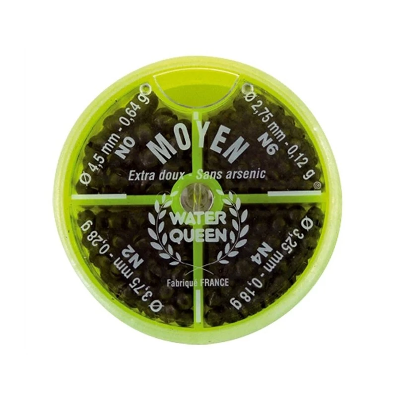 Boîte mélange de plombs WATER QUEEN 4 cases de diamètre et grammage différents.