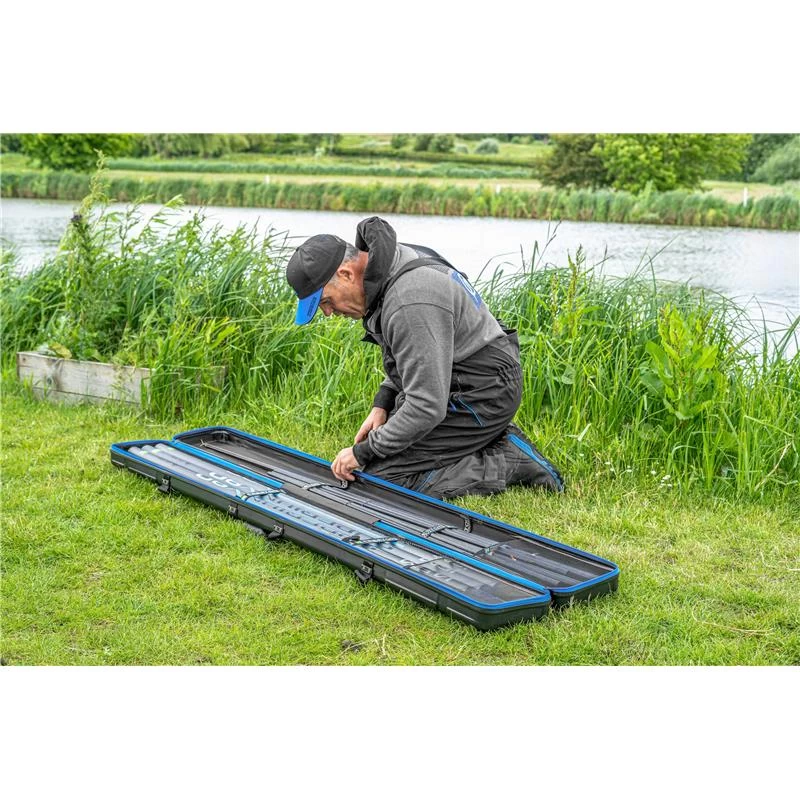 Ce fourreau peut contenir deux cannes de 16 m complètes ou une canne de 16 m avec différents kits et brins supplémentaires, ce qui en fait un outil idéal si vous recherchez une solution compacte pour stocker vos cannes en carbone.
